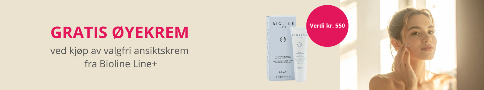 Ny, ellevill kampanje fra Bioline. Kjøp valgfri ansiktskrem fra Vita+, Pura+, Aqua+ eller Dolce+ og få med Aqua+ Eye Contour Gel 30ml helt gratis!